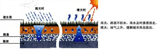 (4)對比彩色透水混凝土,由于傳統(tǒng)混凝土路面的不透水構(gòu)造,其路面外表密實性,不具備散熱特點,使溫度無法傳入地面,特別是夏天的時候,使城市空氣濕度降低,加速了城市“熱島效應(yīng)”的形成。