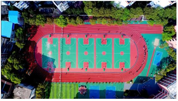 海綿化改造后的透水塑膠跑道、足球場、羽毛球場和籃球場能夠充分滿足學生們的運動需求。操場地下還藏著一個調(diào)蓄池,降雨時能夠收集大量雨水。