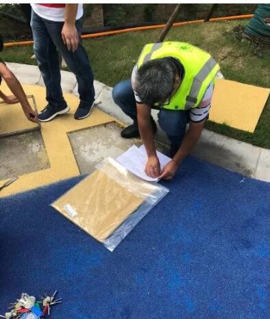 抽檢項目是北京大學附屬小學運動場地改造項目,包括ETPU塑膠跑道、人造草坪、DPU籃球場。抽檢過程是在北大附小代表,家委會代表,行業(yè)代表,第三方檢驗機構(gòu)CTC國檢集團,項目總包方上海都佰城等多方見證下,現(xiàn)場隨機抽樣簽字、拍照、封存后,由第三方抽檢機構(gòu)帶回CTC檢驗中心實施嚴格的化驗流程。