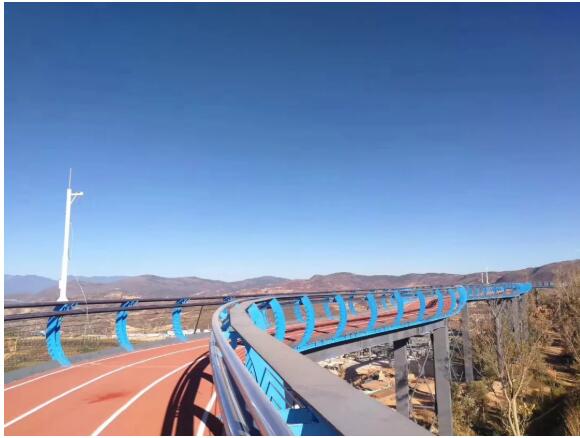 在懸空跑道堪比拍大片,光看圖就覺(jué)得養(yǎng)眼。順著鋼琴一樣的臺(tái)階爬上坡,就能看到這條特別的跑道,全場(chǎng)1400米,全部用塑膠鋪成。
