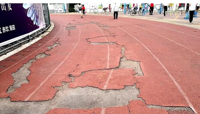赤坎區(qū)運動場之前破損的跑道塑膠。