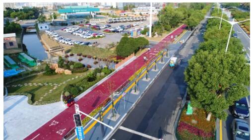 南昌高新區(qū)綠道的建設(shè)遵循以人為本、經(jīng)濟(jì)環(huán)保、因地制宜、疊加組合的設(shè)計(jì)理念,路線規(guī)劃串聯(lián)起城區(qū)各類公共空間資源,就近聯(lián)系各級(jí)城鄉(xiāng)居民點(diǎn),將陳舊老化的人行道和非機(jī)動(dòng)車道升級(jí)為彩色透水混凝土鋪裝的“海綿道路”,形成騎行愛好者和徒步愛好者各得其所的騎行道、漫步道和騎行步行綜合道。