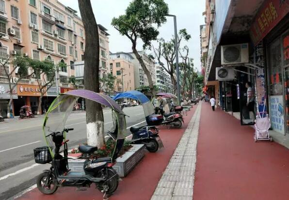 4月28日,記者來到建設(shè)路一段大富豪至九龍?zhí)焯荻慰吹?,街道兩旁棗紅色的人行道舒適平坦,灰白色的大理石樹池里新栽植的一串紅在初夏的晨光里搖曳生姿,改造后的人行道煥然一新,市民行走在嶄新的道路上舒適愜意。