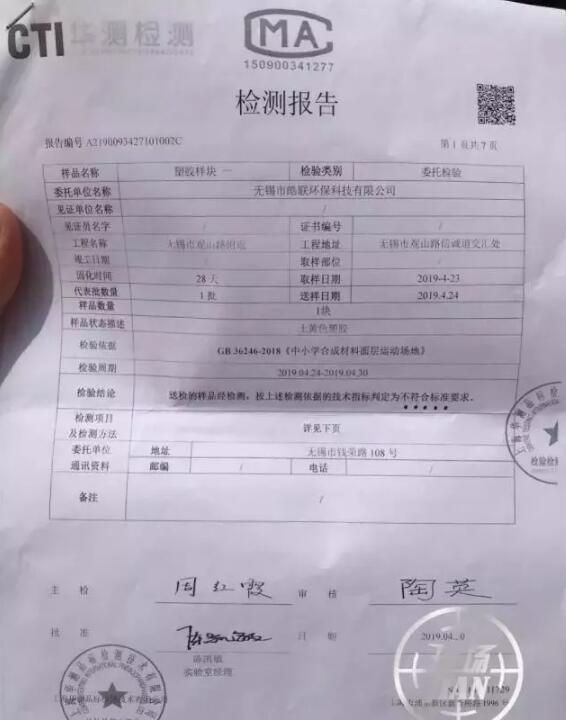 無(wú)錫市人民來(lái)訪接待中心工作人員表示,如果檢驗(yàn)結(jié)果超標(biāo),園林局將協(xié)調(diào)開(kāi)發(fā)商進(jìn)行處理,將塑膠跑道全部鏟除。