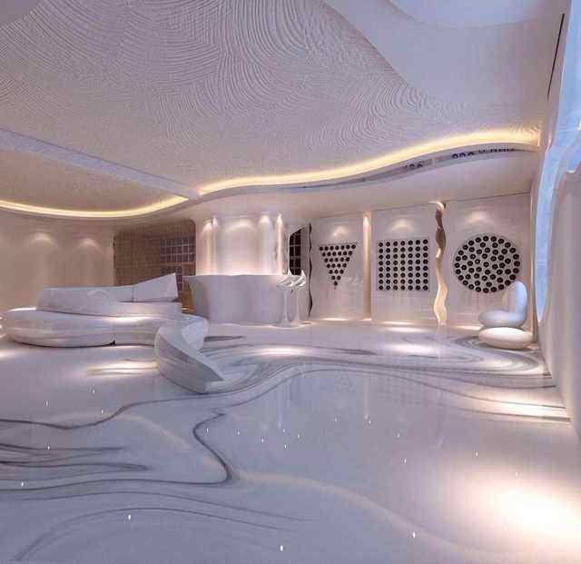 鑲嵌地坪是通過特殊工藝將金屬飾品或者各種材料飾品嵌入地坪當中,打造普通單一材料無法企及的質(zhì)感。