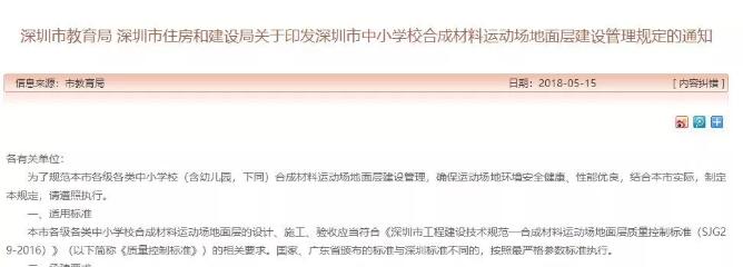 關(guān)于印發(fā)深圳市中小學(xué)校合成材料運動場地面層建設(shè)管理規(guī)定的通知