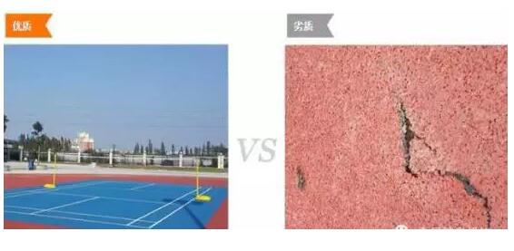 ③、一般不是專業(yè)做運(yùn)動(dòng)場人員修補(bǔ)的地方,起殼的概率很大的,看是否有修補(bǔ)的地方也可以判斷是否會(huì)存在起殼的情況;