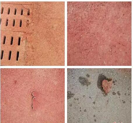膠水、膠粒的配比不合理,塑膠跑道表層是由膠粒與膠水按一定比例配比而成,比例一般是一比一,打了或者小了都會出問題。
