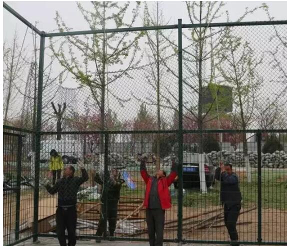 第三步:場(chǎng)地四周擋網(wǎng)、網(wǎng)球墻、燈光系統(tǒng)等附屬設(shè)施建設(shè)