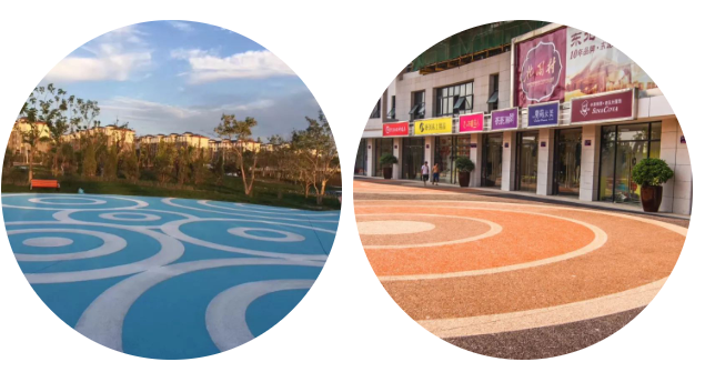 圓形鋪裝圖形完美柔潤(rùn),用時(shí)通過(guò)不同色彩的圓環(huán)鋪裝,給人以強(qiáng)烈的節(jié)奏感和韻律感。
