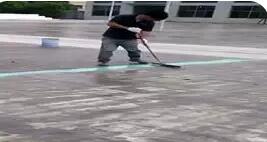 2.若積水深度超過(guò)5mm的地方,應(yīng)用彈性層薄涂一道于積水處,再用防水低涂加40~80目砂按1:6~8(重量比)拌和均勻,平整攤鋪于積水處并壓實(shí),(薄涂彈性層作用為保證修補(bǔ)料與基面粘結(jié)牢固;若砂粒較細(xì)>80目,加入量要相應(yīng)減少)修補(bǔ)時(shí)注意修邊不要讓修補(bǔ)后的邊高出基面,若有高出需在固化后打磨平整后才能進(jìn)行彈性層施工。