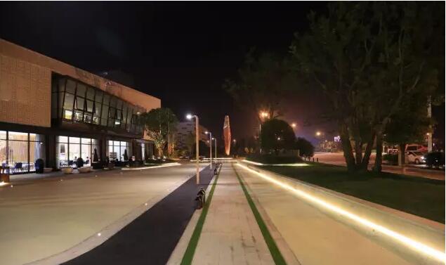 燈光設(shè)計也是本項(xiàng)目重點(diǎn)設(shè)計之一。地面的點(diǎn)式地?zé)?、花池邊隱藏的燈帶、高桿庭院燈等燈光的設(shè)計統(tǒng)一協(xié)調(diào),點(diǎn)、線、面以及光色的搭配,使得遠(yuǎn)處的自然風(fēng)光與燈光景觀相得益彰。