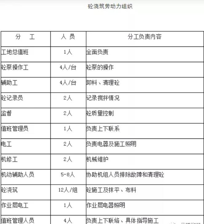 十二、砼澆筑勞動力組織