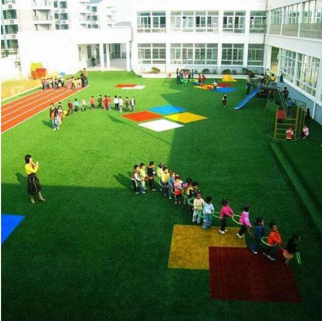 3、幼兒園人造草坪可以有效起到緩沖和減震的作用。這不僅可以保護(hù)小孩子的安全問(wèn)題,還可以大大提高人造草坪的使用壽命。