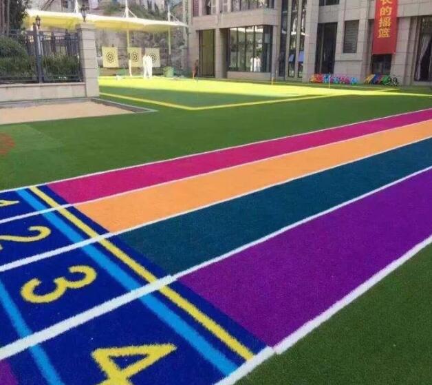 2、幼兒園的人造草坪美觀,多彩。在鋪裝的過(guò)程中,可以采取不同顏色的草坪拼接出不同圖案,可以有效提高幼兒園小朋友的思維。