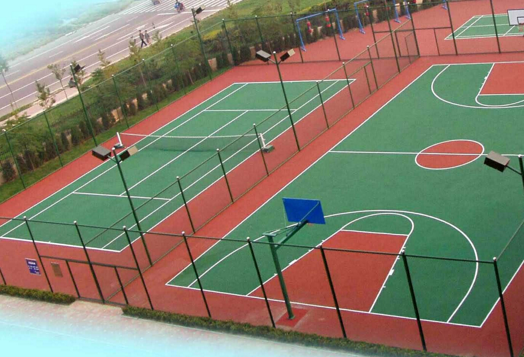 彈性丙烯酸籃球場:由100%的丙烯酸類材料和特制的聚合橡膠顆粒組成,具有良好的韌性,并可以遮蓋因基礎(chǔ)產(chǎn)生的細(xì)小裂縫;一年四季都能保持良好效果。具有極佳的減震性能,減輕打球者腳部和腿部受到的震蕩(尤其是和非專業(yè)選手及休閑娛樂);消除因設(shè)施產(chǎn)生的疲勞,提高運動樂趣。