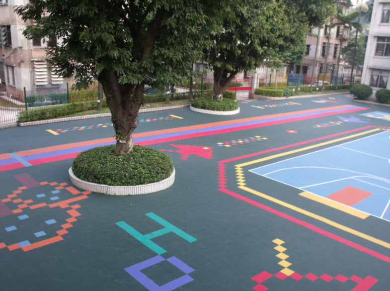 采用原色橡膠顆粒,顏色鮮艷,色彩豐富可組成各種卡通圖案,不易褪色。其透心特質(zhì),即表面磨損仍光滑如新。因整體鋪設(shè),故不存在裂縫問題。其下面吸震層可根據(jù)地面狀況作適當(dāng)調(diào)整,使其表面平整。