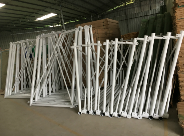 十一制:門柱管75×2.5mm管 后支撐管32×2mm管 門內(nèi)框?qū)?320×2440mm
