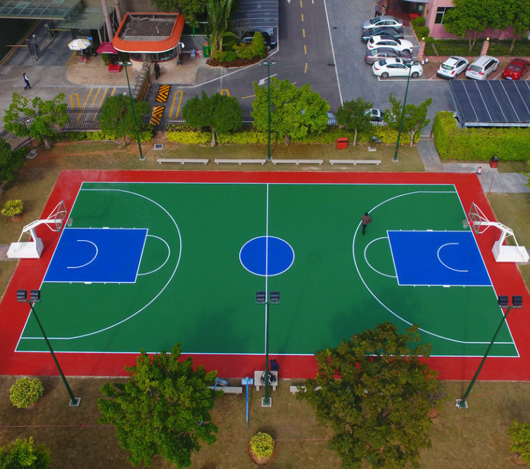 室外籃球場照明一般選用6米7米或8米的錐形鍍鋅管高桿燈,燈具的選擇上以射燈(金鹵燈)或LED燈為主,一個標準的室外籃球場(28*15m)需配置4-6條錐形燈桿,每根高桿燈裝配2-3盞400w金鹵燈,就可以很好的達到戶外籃球場夜晚照明的需求。