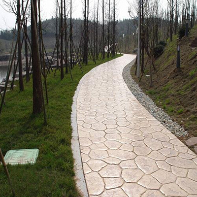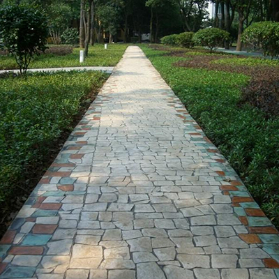 仿石壓模地坪是一次成型的鋪裝方式,不僅施工快捷,后期的維護(hù)也簡易,幾乎不需要維護(hù)管理,因?yàn)樗遣粫?huì)出現(xiàn)像真石那樣高低不平、容易松動(dòng)的情況。